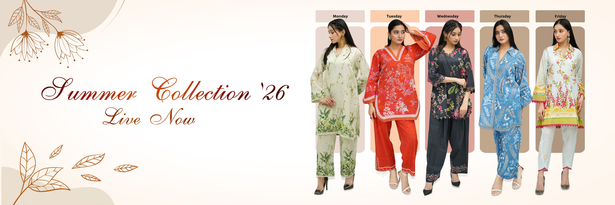 Step into the season with elegance and comfort. Our SUMMER’26 Collection is designed to keep you cool, confident, and effortlessly stylish. From breathable fabrics to vibrant colors and trendy cuts, every piece is crafted for modern women who love fashion with comfort.